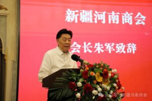 朱军会长在致辞中首先向陈文龙当选首届乌鲁木齐市周口商会会长致以热烈祝贺,他期望在以陈文龙为核心的新一届领导班子引领下,商会能充分凝聚周商群体的智慧与力量,搭建起乌鲁木齐与周口两地经济协作的坚实桥梁,以务实举措推动两地产业资源对接,为实现两地经济高质量发展注入强劲的周商动能。